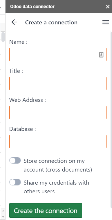 The first time you launch the application you have to define your connection. You will be able next to create other connections in order to retrieve data from others Odoo instances or companies.